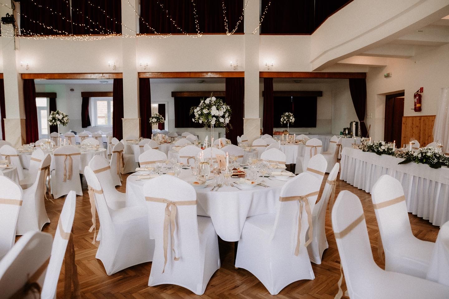 Okrúhle stoly dodajú každej sále noblesu. Vytvoria pocit vzdušného a využitého priestoru. Hostia majú ľahší prístup k stolom a pohyb po miestnosti je jednoduchší.